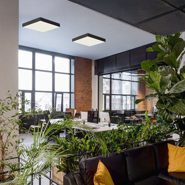 Ceiling light with built in LED and a minimalist frame. The fixture includes a built-in switch to change the color temperature of the light (3000K, 4000K, 6500K).