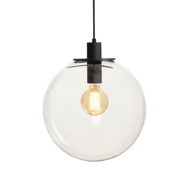 Glass pendant in the shape of a sphere for an LED light source with an E27-base, with a maximum diameter of 80 mm. Small bubbles in the glass are caused by the manufacturing process and do not indicate a defect in the shade.