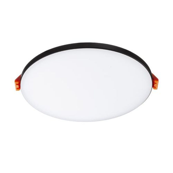Round LED downlight for installation into ceilings with low recess depth. De frame and design of this product is very similar to the LARISA range and is therefor a suitable match. On account of the installation springs being adjustable, the light can be installed into pre-existing ceiling holes, making it a great choice for replacing old halogen downlights.