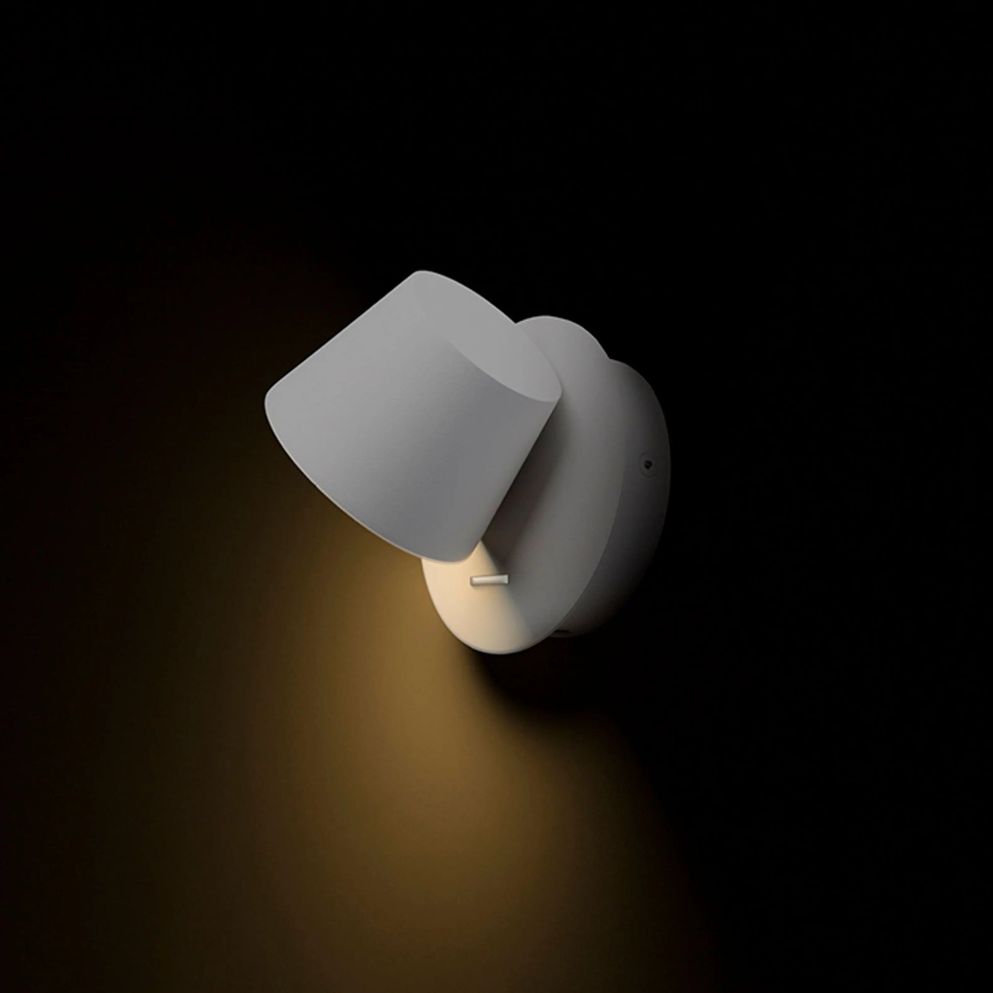 Wall lamp with integrated LED, rotatable shade and switch on the base.