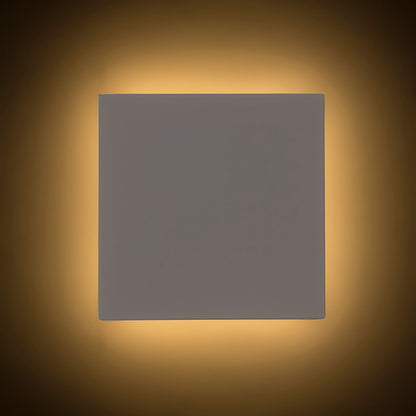 Square wall light with integrated LED for indirect illumination by reflecting the light off the wall. Suitable for outdoor and indoor use.