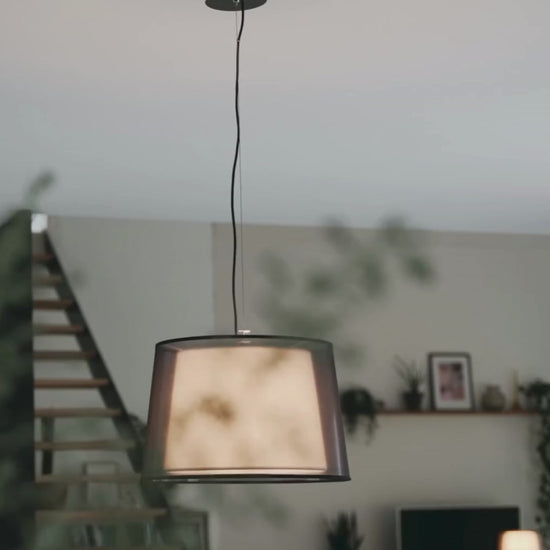 Pendant with double textile shades.