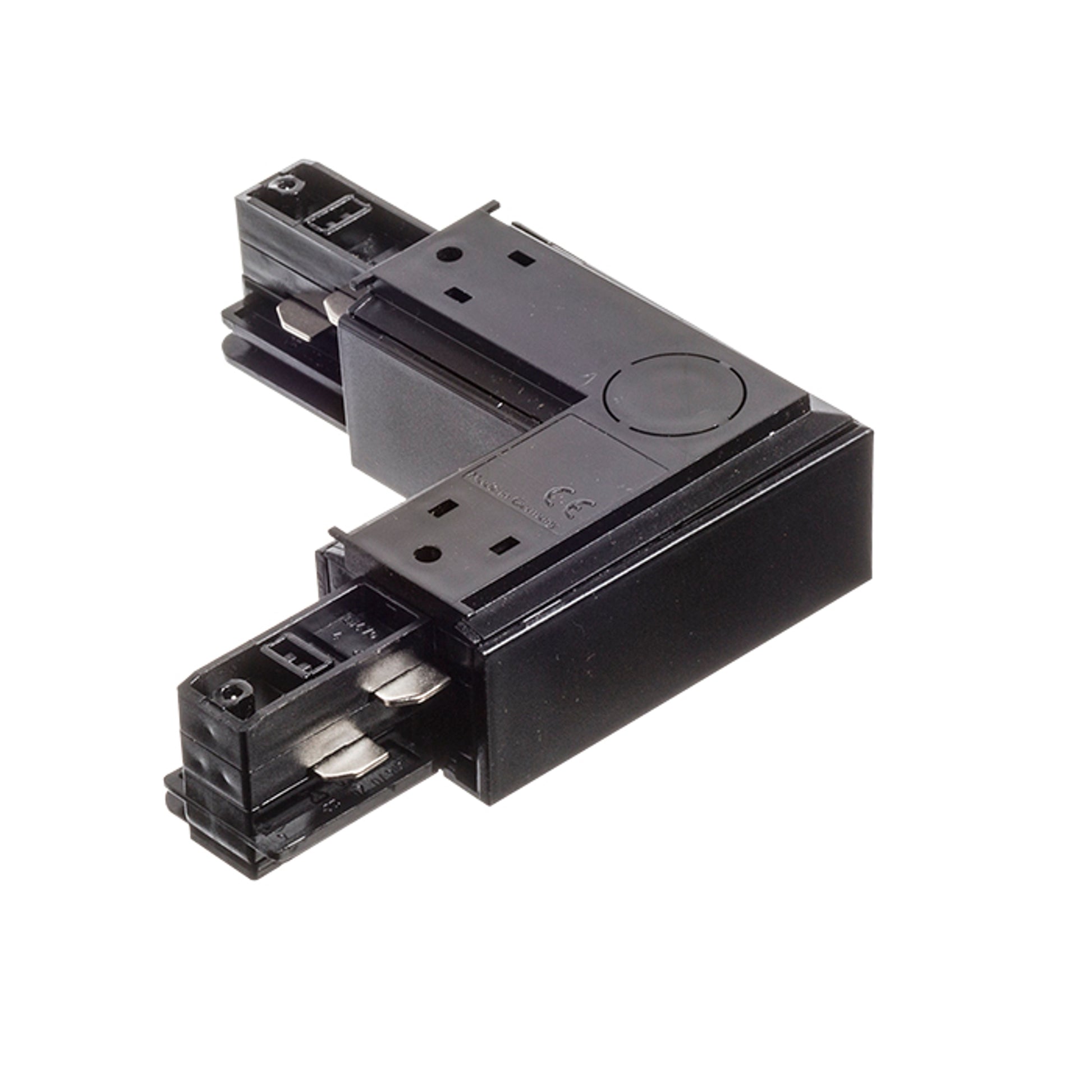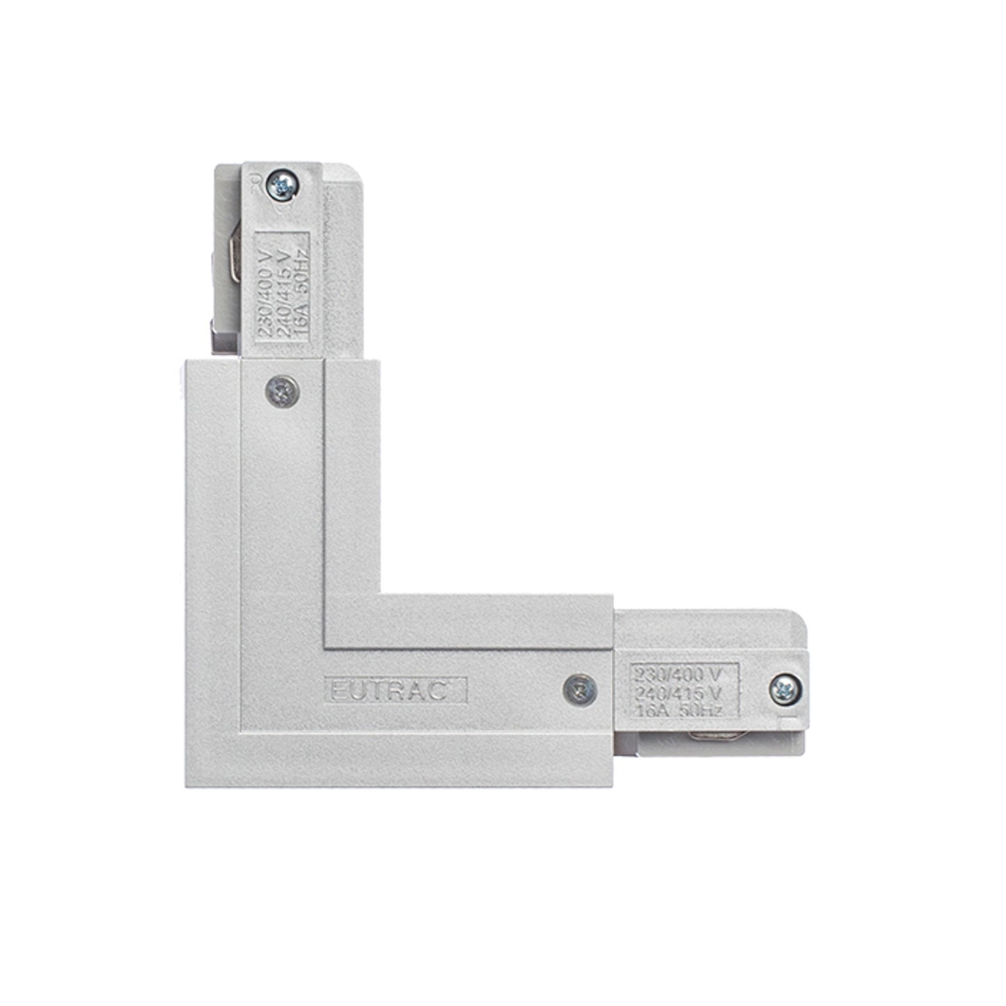 L-connector with feed-in for a EUTRAC 3-circuit track. Maximum load 16A.