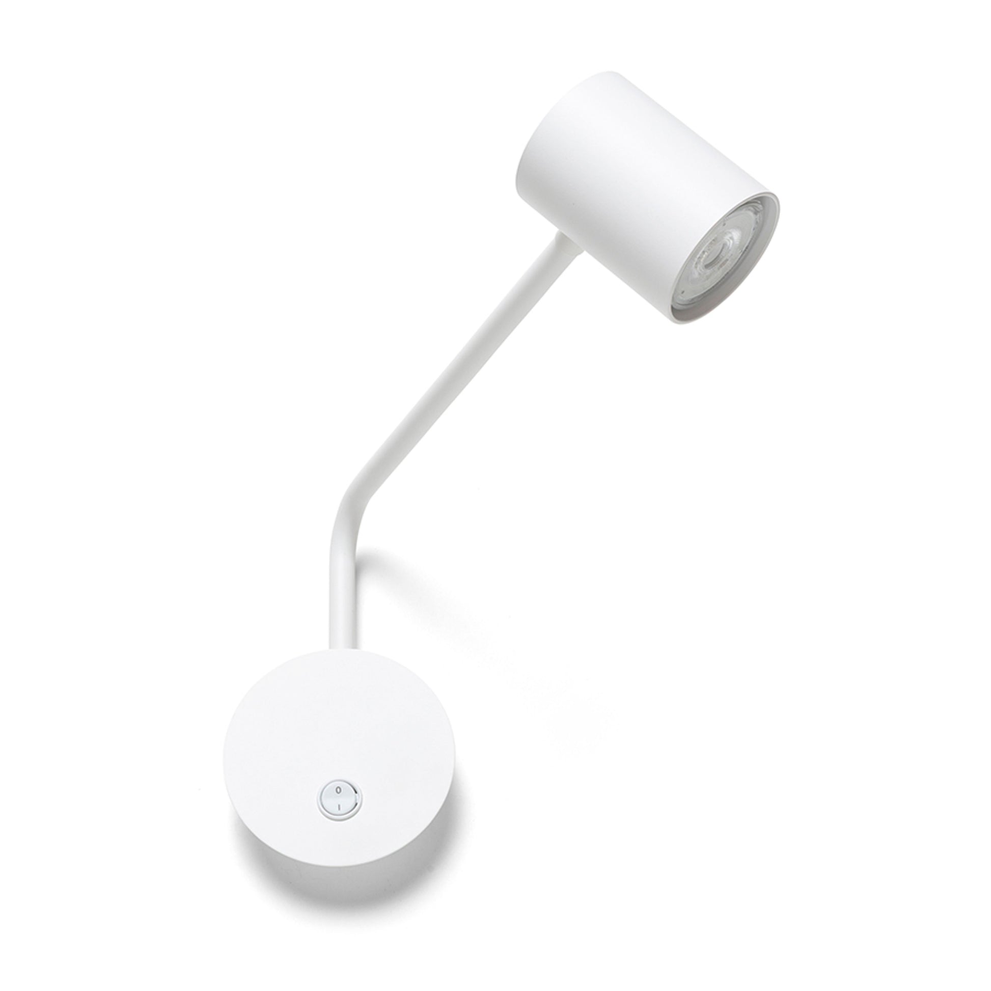 Wall-mounted lamp featuring an adjustable spotlight and a movable arm on the horizontal axis, suitable for GU10 LED light sources.