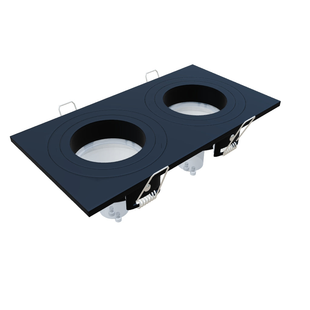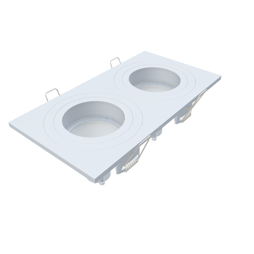 Recessed LED light for double GU10 LED light sources, suitable for bathrooms. Designed for drywall installation only.