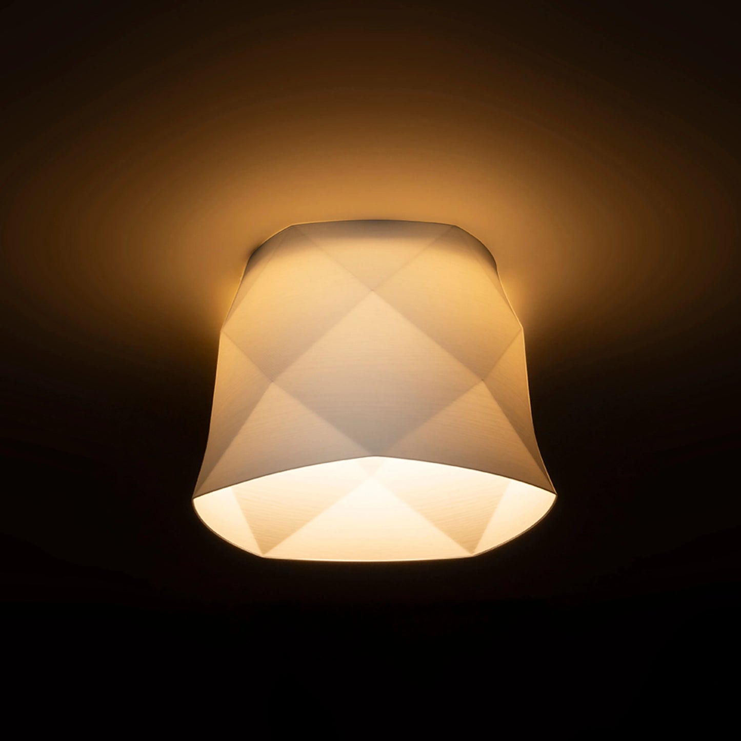 A recessed LED lamp for a drywall ceilings with a low recessed depth and a decorative shade. The shade is created by 3D printing. Made of eco-friendly PLA material, which is fully degradable. The size of the mounting hole can be adjusted using the sliding fixing springs. The lamp can conveniently replace existing halogen lamps without the need for modification of the old holes.
