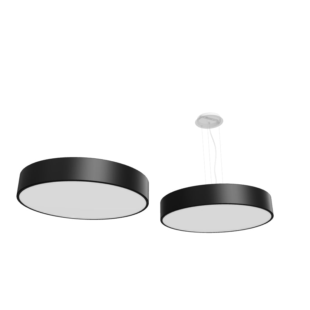 Ceiling lamp with a built in LED light source and lacquered aluminum frame. The fixture is supplied with a frosted polycarbonate light diffuser. When combined with the suspension kit (R13330 or R13331), it can also be installed as a pendant. TRIAC dimming.