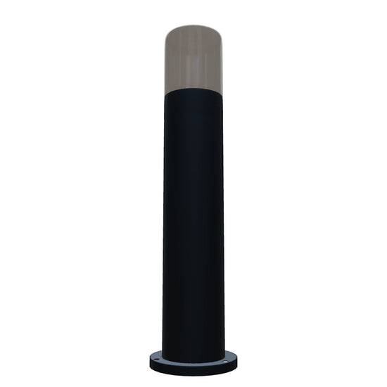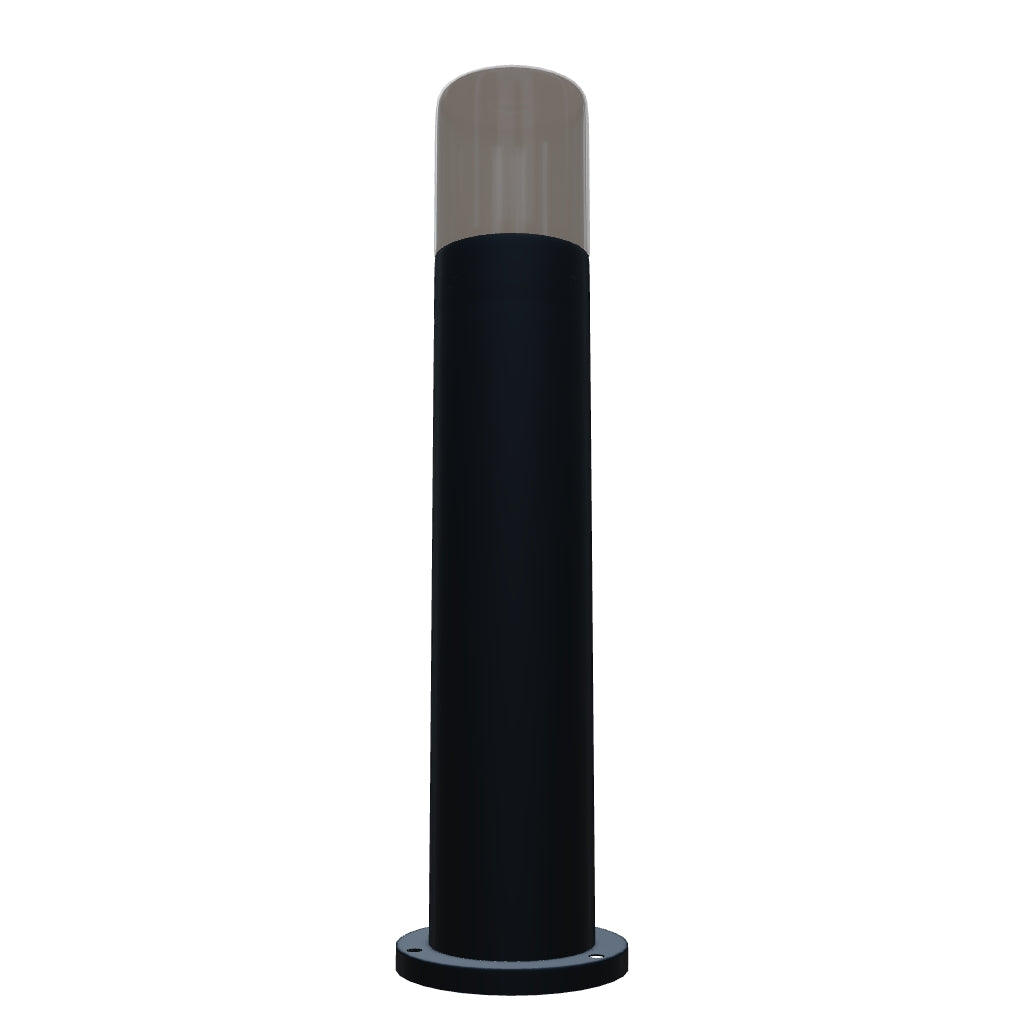 Outdoor bollard with amber glass for ambient lighting, designed for LED bulbs with an E27 base.