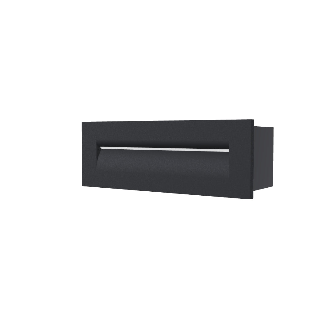 Recessed wall light with integrated LED for indoor and outdoor use. Suitable as orientation lighting of paths, stairs or terraces. Only for downward installation.