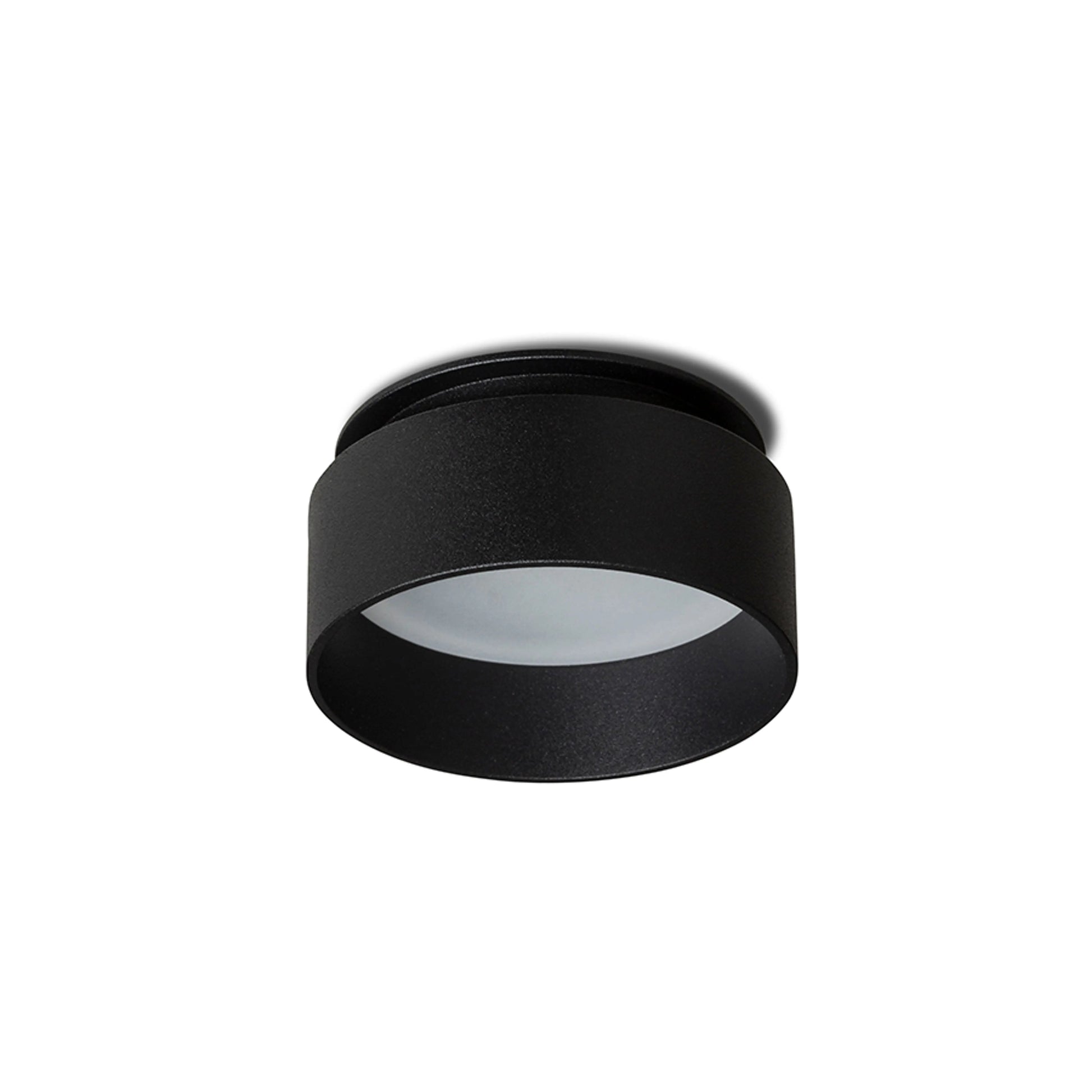 Partially recessed aluminum light with an offset for indirect lighting, suitable for use with drywall and designed for LED light sources that have a GU10 socket.
